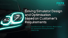 So hielt Dr.-Ing. Gerd Baumann eine spannende Keynote zum Thema „Driving Simulator Design and Optimisation based on Customer's Requirements“, in der er einen tiefen Einblick gab, wie das FKFS bei der Anforderungsspezifikation für Fahrsimulatorsysteme vorgeht. Dieser Ansatz hat sich in mehreren Projekten bewährt, in denen das FKFS OEMs bei der Spezifikation des idealen Systems für ihre Anwendungsfälle aus einer Vielzahl von Fahrsimulatoren unterstützt hat. Dazu gehört auch die Spezifikation von Gebäudeanforderungen und Software-Frameworks.