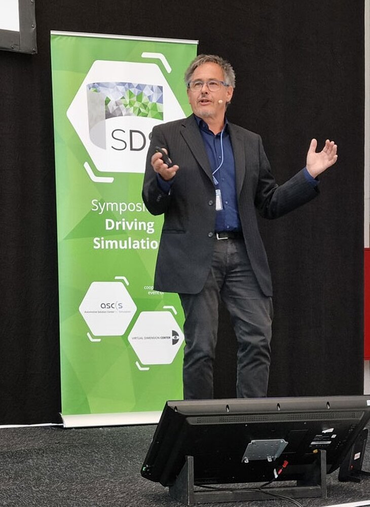 Einer der Höhepunkte: Gerd Baumann demonstrierte eindrucksvoll, wie unterschiedliche Fahrsimulatortypen inklusive ihrer Sichtsysteme im Stuttgarter Fahrsimulator nachgebildet werden