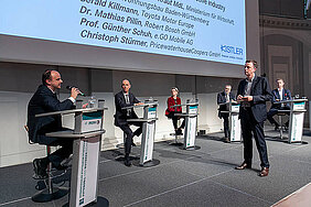 Mit einer lebendigen Podiumsdiskussion und der Abschlusskeynote von Dr. Nicole Hoffmeister-Kraut wurde das 19. Internationale Stuttgarter Symposium gestern erfolgreich abgeschlossen. Bei der Podiumsdiskussion zum Thema "Die Transformation der Automobilindustrie" diskutierten: Dr. Nicole Hoffmeister-Kraut, Ministerium für Wirtschaft, Arbeit und Wohnungsbau Baden-Württemberg; Gerald Killmann, Toyota Motor Europe; Dr. Mathias Pillin, Robert Bosch GmbH; Christoph Stürmer, PricewaterhouseCoopers GmbH; Prof. Günther Schuh, e.GO Mobile AG. Bei ihrer anschließenden Keynote zeigte die Ministerin eine positive Aufbruchsstimmung und beschrieb die Veränderungen in der Automobilindustrie als Herausforderung, aber auch als Chance. Zudem plädierte sie für eine Technologieoffenheit im Transformationsprozess. Bei seinem Schlusswort bedankte sich Prof. Dr. Jochen Wiedemann, FKFS bei den Teilnehmern und verwies bereits auf das 20. Internationale Stuttgarter Symposium vom 17.-18.03.2020.