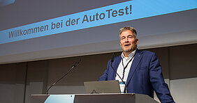 Heute Vormittag startete die 2024 AutoTest Fachkonferenz – Testing von Hardware and Software in Automotive Development im Haus der Wirtschaft in Stuttgart. Die Fachkonferenz mit dem diesjährigen Schwerpunktthema „Datengetriebene Testen in der Automobilentwicklung“ begann zunächst mit einem Grußwort von Prof. Hans-Christian Reuss, Vorstandsmitglied und Leitung des Vorstandsbereichs Fahrzeugmechatronik am FKFS. Da dies die letzte AutoTest ist, an der er als wissenschaftlicher Leiter teilnehmen wird, blickt er stolz auf die letzten Jahrzehnte der AutoTest. Das Besondere an der AutoTest ist seiner Meinung nach, dass sie Menschen zusammenbringt – nämlich diejenigen, die die Herausforderungen sehen, mit denen, die Lösungen anbieten.