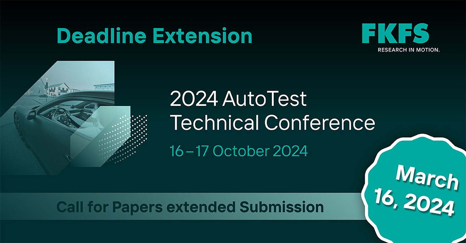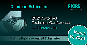 Am 16. und 17. Oktober 2024 veranstaltet das FKFS die AutoTest Technical Conference zum zehnten Mal im Haus der Wirtschaft in Stuttgart. Werden Sie Teil des hochkarätigen Programms und präsentieren Sie neueste Entwicklungen und aktuelle Forschungsergebnisse rund um das Thema Test von Hardware und Software in der Automobilentwicklung.