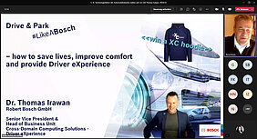 Mit seinem Vortrag „Drive & Park #LikeABosch - how to save lives, improve comfort and provide Driver eXperience“ führte Herr Dr. Irawan die 130 Teilnehmer in dieses wichtige Thema der Automobilindustrie ein. Doch wie werden das Fahren und Parken mit Komponenten, welche die Robert Bosch GmbH entwickelt hat, die Zukunft sicherer machen?