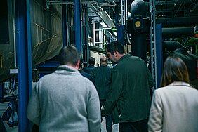 Zu Beginn stellte Herr Wagner das FKFS und insbesondere den zweiten Standort in Filderstadt vor. Dabei präsentierte er die Forschungsfelder Aerodynamik und Aeroakustik, Thermomanagement und Klimakomfort sowie viele weitere. Im Anschluss erhielten die Teilnehmenden bei einer Führung durch das Gebäude des FKFS Center for Climate Comfort Einblicke in die technischen Einrichtungen, Prüfstände und laufenden Forschungsprojekte.