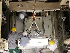 Die Waage wird in die Drehscheibe eingebaut. Sie ermöglicht es, in Zukunft in Verbindung mit dem Böengenerator instationäre Kräfte zu messen.