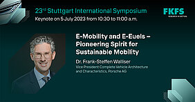 In nur drei Wochen startet das 23. Internationale Stuttgarter Symposium! Wir freuen uns Ihnen heute eine weiteres Highlight ankündigen zu können: Dr. Frank-Steffen Walliser, Leiter der Hauptabteilung Gesamtfahrzeug-Architektur & -Eigenschaften der Porsche AG hält am 5. Juli um 10:30 Uhr eine Keynote mit dem Titel "E-Mobility und E-Fuels – Pioniergeist für nachhaltige Mobilität".