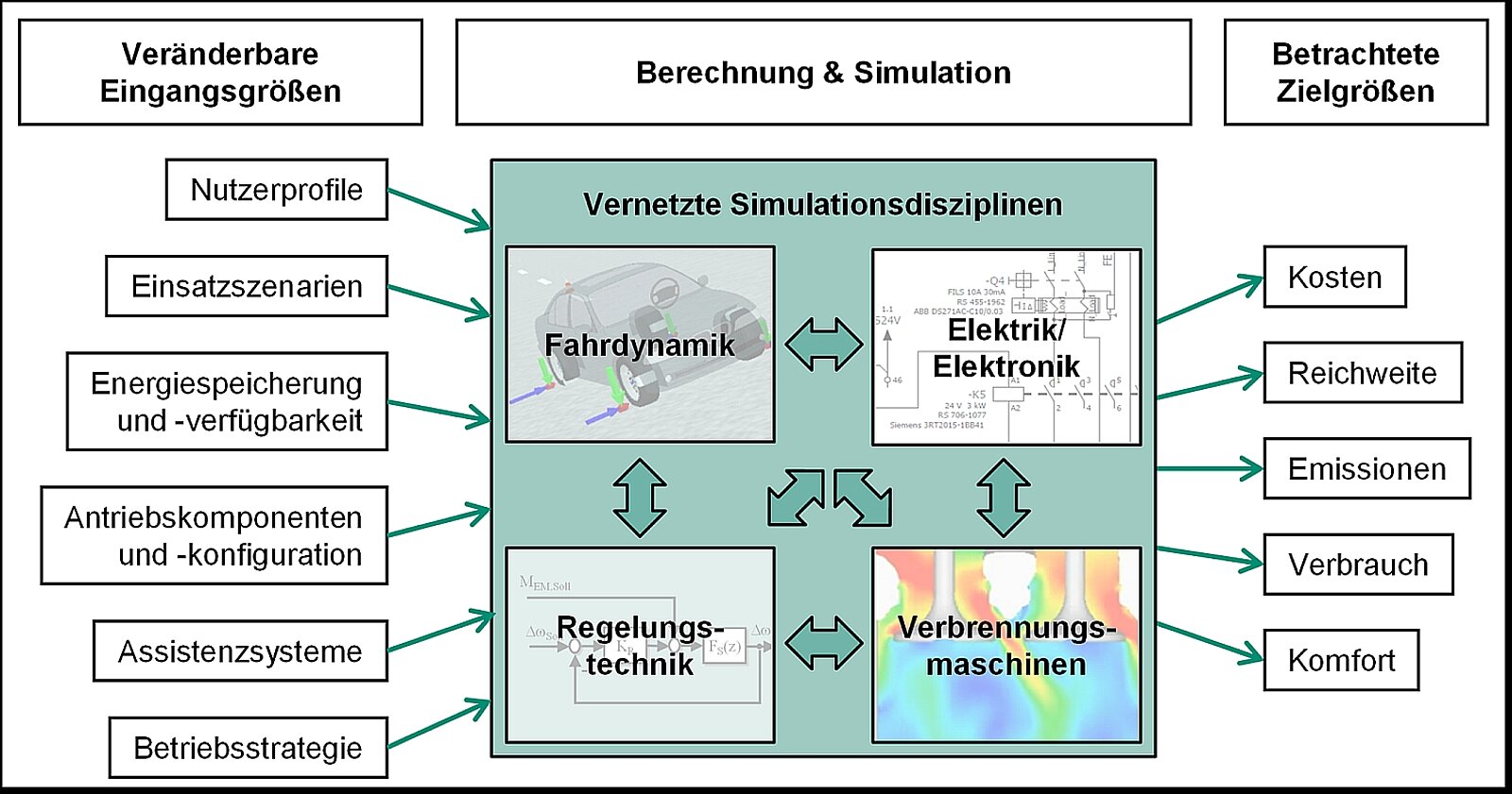 Mit den Methoden der Statistischen Versuchsplanung werden in der letzten Projektphase ab sofort Simulationen mit gezielten Parametervariationen durchgeführt. So lässt sich ermitteln, wie die einzelnen Stellgrößen Fahrzeugeigenschaften beeinflussen, die für den Energiehaushalt und für die Umwelt, aber auch für den Fahrkomfort relevant sind. Die Strecken, die während der Simulation gefahren werden, sowie die Geschwindigkeitsprofile stammen aus Aufzeichnungen, die mit Messfahrzeugen aus der Elektrofahrzeugflotte des FKFS im realen Straßenverkehr und mit ausgewählten Probanden gewonnen wurden. Auf diese Weise wird der Realitätsbezug der Simulation sicher gestellt. Diese Erkenntnisse lassen es zu, Rückschlüsse bei der Entwicklung und Konzeption neuer Antriebskonfigurationen und Betriebsstrategien zu ziehen und Einsparpotentiale zu identifizieren.