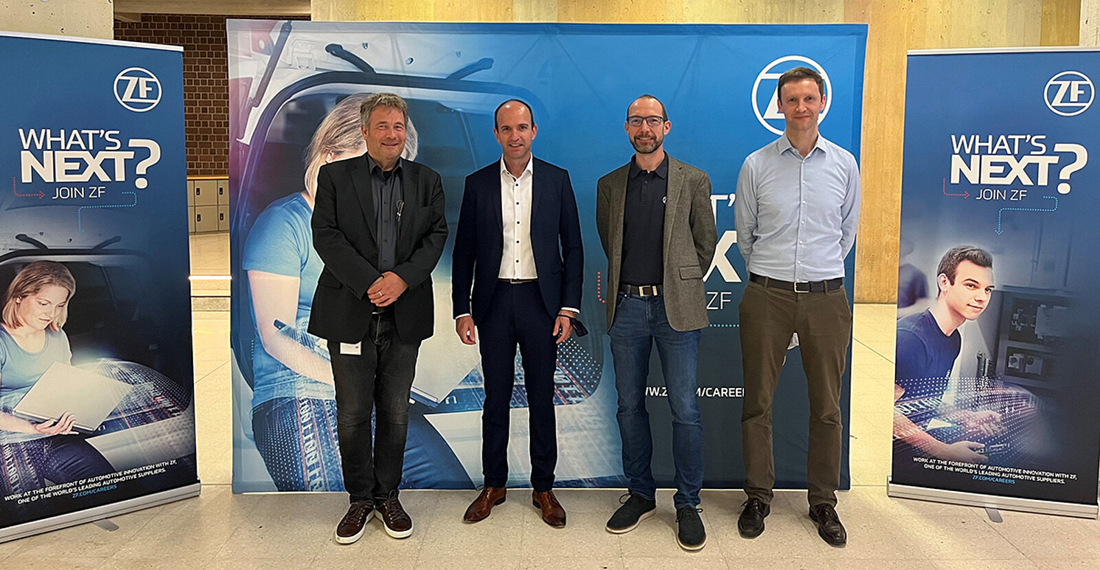 Der Referent, Herr Dr. Christian Brenneke, Entwicklungsleiter Nutzfahrzeugtechnologie und Geschäftsführer Systemlösungen, nahm die Zuhörer mit auf eine Reise in die Welt des größten Nutzfahrzeuglieferanten. Dabei erläuterte er, wie der Transport auf der Straße sicher, nachhaltig und intelligent gelöst werden kann. All dies will die ZF Friedrichshafen AG durch die Elektrifizierung, Automatisierung und Vernetzung der Nutzfahrzeuge erreichen.