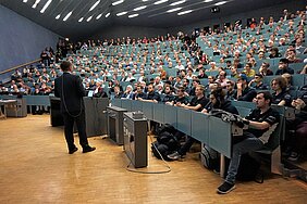 Die Vortragsreihe "Technologieführer der Automobilindustrie stellen sich vor" ist erfolgreich in den Winter gestartet. Den Auftakt gab gestern Steffen Muth, Leiter Entwicklung Systemkomponenten / -validierung Brennstoffzelle bei der AUDI AG. Vor einem vollen Hörsaal sprach Herr Muth zum Thema "h-tron: en Antrieb der Zukunft". Neben einem sehr guten Überblick über die im Fahrzeug eingesetzten Technologien wurde auch die wichtige Rolle des Wasserstoffs als Energieträger betrachtet. Wir danken Herrn Muth und dem gesamten Team der AUDI AG für eine tolle Veranstaltung.