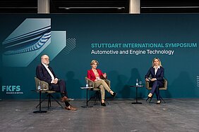 Was für ein spannender Tag! Den Auftakt des 22. Internationalen Stuttgarter Symposiums bildete um 9 Uhr die Welcome Session aus dem Haus der Wirtschaft in Stuttgart, die von Dr.-Ing. Lea Schwarz, Projektreferentin Antriebsstrategie AUDI AG moderiert wurde. Als Gäste begrüßte Lea Schwarz Prof. Dr. Michael Bargende, Vorstand des FKFS, Dr. Nicole Hoffmeister-Kraut, Ministerin für Wirtschaft, Arbeit und Tourismus Baden-Württemberg sowie Prof. Dr. Wolfram Ressel, Rektor der Universität Stuttgart.