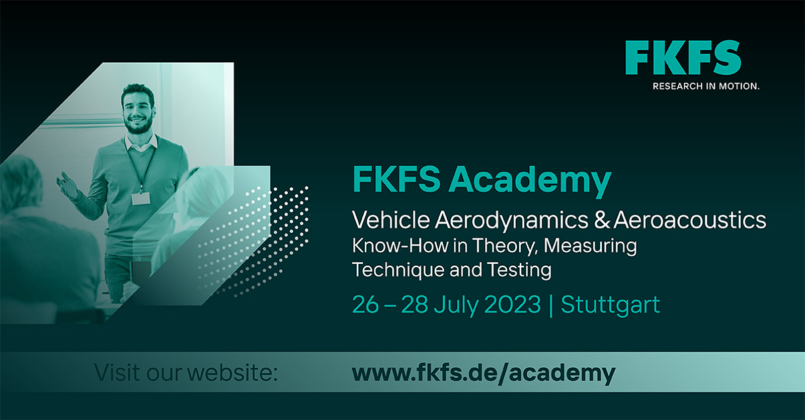 Vom 26. bis zum 28. Juli findet der Kurs „Vehicle Aerodynamics & Aeroacoustics“ statt, der die FKFS Academy abschließt. Der dreitägige Kurs richtet sich an Fachleute, die auf dem Gebiet der Fahrzeug-Aerodynamik und Aeroakustik arbeiten oder sich weiterbilden möchten. Dozent Dr.-Ing. Daniel Stoll konzentriert sich mit seinen Co-Referenten auf die Grundlagen der Aerodynamik und Aeroakustik und deckt in diesem Kurs aktuelle Messtechniken, Rechenverfahren und Optimierungsstrategien ab. Die Inhalte werden sowohl durch Vorträge als auch praktisch in Übungen, insbesondere in Windkanälen, vermittelt. Dadurch können die Teilnehmenden das gelernte Wissen anwenden, um nach Abschluss des Kurses aerodynamische und aeroakustische Entwicklungsarbeiten an Fahrzeugen effektiv durchzuführen.