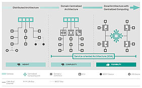 Die elektrische/elektronische Architektur eines Fahrzeugs umfasst die elektronische Hardware, die Verkabelung, die Netzwerkkommunikation und die Softwarefunktionen. Die Architektur wird definiert durch die Anordnung, Verteilung und Zuordnung dieser Komponenten zueinander. Mit zunehmender Anzahl der in Software ausgeführten Funktionen führt die traditionell gewachsene Zuordnung einzelner Funktionalitäten zu dedizierten Steuergeräten zu schwer beherrschbarer Komplexität, Kosten und Gewicht. Neue Funktionalitäten wie autonomes Fahren, OTA-Updates, digitale Dienste und Car2X-Anwendungen stellen weitere Anforderungen an Konnektivität, Rechenleistung, Flexibilität und Updatefähigkeit. Zukünftige Architekturen müssen die Integration von immer mehr Funktionalitäten ermöglichen und dabei die Anforderungen an Sicherheit, Ressourcenverbrauch, Gewicht, Kosten und Kreislaufwirtschaft berücksichtigen.