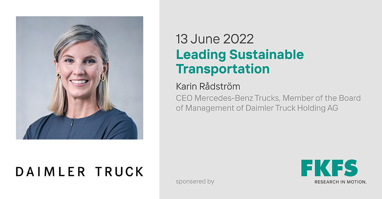 Kommenden Montag, am 13.06., steht ein ganz besonderes Highlight an: im Rahmen der Technologieführer-Veranstaltungsreihe wird Karin Rådström, CEO Mercedes-Benz LKW, Mitglied des Vorstands der Daimler Truck Holding AG, einen Vortrag zum Thema „Leading Sustainable Transportation“ halten.