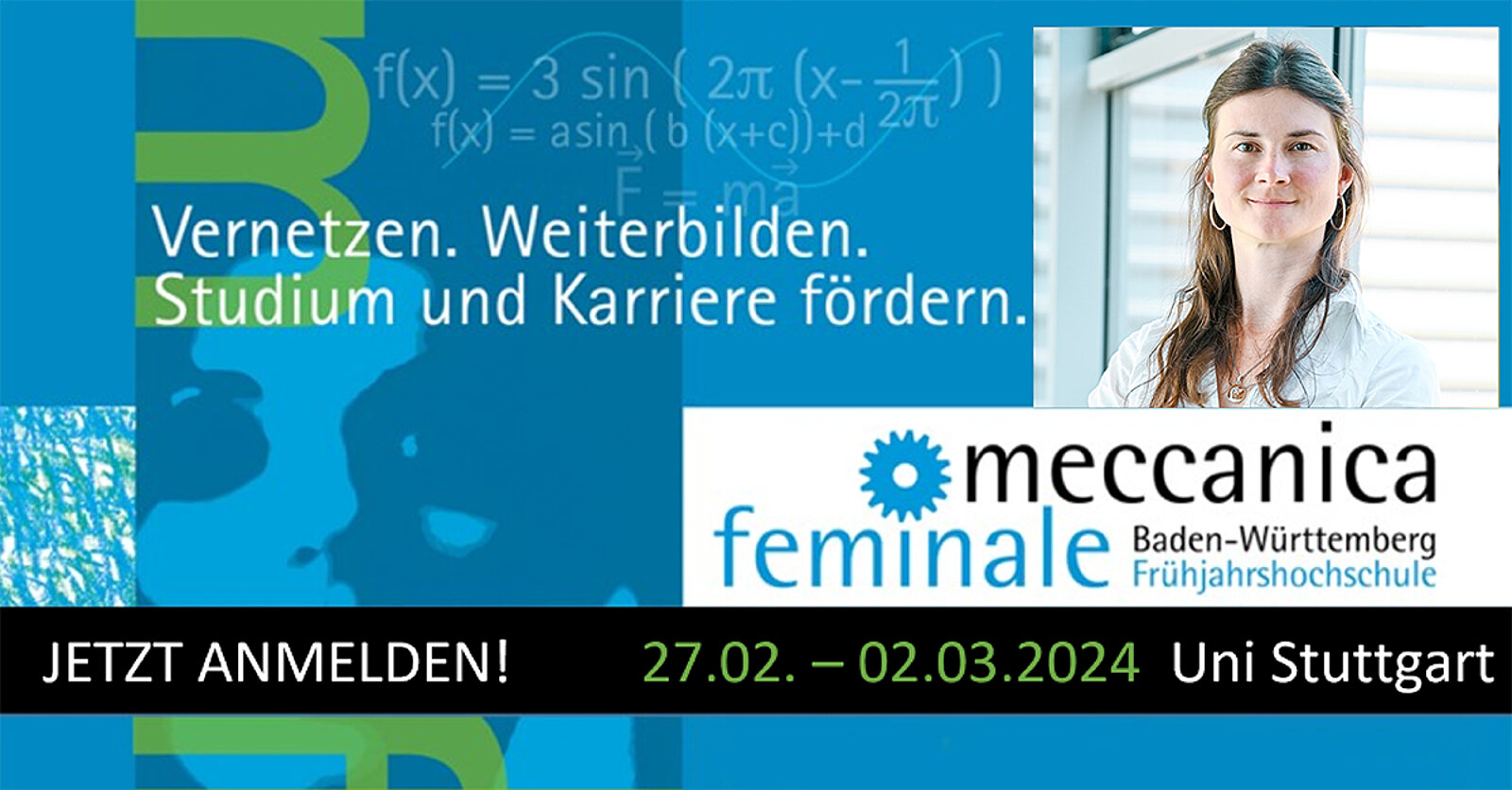 Vom 27. Februar bis 2. März 2024 findet an der Uni Stuttgart die 15. Frühjahrshochschule meccanica feminale statt, die sich an MINT-Studentinnen & Fachfrauen richtet. Das Hauptthema in diesem Jahr ist wichtiger denn je: Energie & Umwelt.