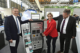 Auch Ministerin Dr. Nicole Hoffmeister-Kraut machte im Rahmen einer politischen Delegation eine Runde durch den Baden-Württemberg-Pavillon. Dabei ließ es sich die Ministerin für Wirtschaft, Arbeit und Wohnungsbau des Landes Baden-Württemberg nicht nehmen auch am FKFS-Stand vorbeizuschauen. Den Ausführungen von Prof. Dr.-Ing. Hans-Christian Reuss über die Funktionsweise des ausgestellten Conformance Testers lauschte sie mit großem Interesse. Wir freuen uns sehr, dass wir die Ministerin bei uns begrüßen durften.