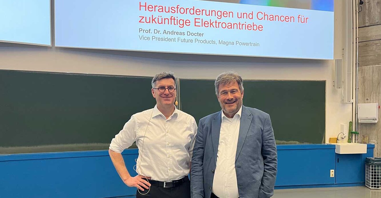 Prof. Dr. Andreas Docter, Vice President Future Products, hat bei der gestrigen Technologieführer Veranstaltung die 150 Teilnehmer*innen mit in die umfangreiche Welt von MAGNA genommen. In seinem spannenden Vortrag "Herausforderungen und Chancen für zukünftige Elektroantriebe" ging Prof. Andreas Docter auf die Entwicklung der Elektromobilität ein und erläuterte den bis 2030 zu erwarteten Mix der Antriebstechnologien sowie die „MAGNA Operation Strategy“.