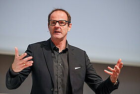 Am Nachmittag betrat der Wissenschaftskabarettist Vince Ebert die Bühne und erklärte das Wesen der Wissenschaft aus seiner eigenen, nicht immer ganz ernst gemeinten Perspektive. Seine Thesen brachten die Besucher*innen zum Schmunzeln und waren gleichzeitig eine Motivation an alle Wissenschaftler*innen auch Rückschläge in Kauf zu nehmen, um Innovationen voranzutreiben.