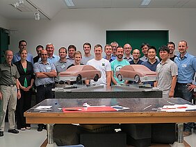 Den Abschluss bildete der sehr gut nachgefragte Kurs "Vehicle Aerodynamics and Aeroacoustics" mit Prof. Jochen Wiedemann und weiteren Experten vom FKFS. An diesem sehr international belegten Kurs nahmen Teilnehmer aus Tschechien, Italien, Belgien, Großbritannien, China und Korea teil. Unter anderem wurden aerodynamische Tests im Modelwindkanal sowie Verschmutzungsuntersuchungen im Thermowindkanal durchgeführt, der 1:1 Fahrzeugwindkanal und der Fahrsimulator wurden besichtig.