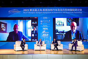 Den Abschluss des Symposiums bildete die Podiumsdiskussion zum Thema „Global Challenges for Developing Future Vehicles“. Unter der Leitung von Dr. Xiong Lu von der Tongji University haben folgende Diskussionsteilnehmer teils zugeschaltet aus Stuttgart teils vor Ort diskutiert:
