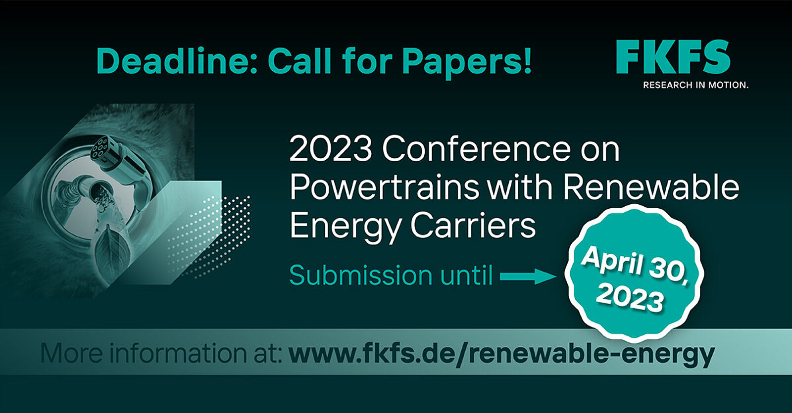 Aufgrund mehrfacher Anfragen verlängern wir die Frist zur Einreichung eines Abstracts für die Tagung Fahrzeugantriebe mit erneuerbaren Energieträgern 2023 bis zum 30. April 2023.