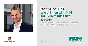 Am kommenden Montag, 5. Juni findet die nächste Veranstaltung der Technologieführer-Reihe statt. Jörg Winter, Leiter Prozessentwicklung und Strategie Kunde-Kunde-Prozess der Dr. Ing. h.c. F. Porsche AG ist zu Gast. Nach seinem Vortrag „Wie bringen wir mit KI die PS zum Kunden?“ erwartet die Teilnehmenden eine Fragerunde.
