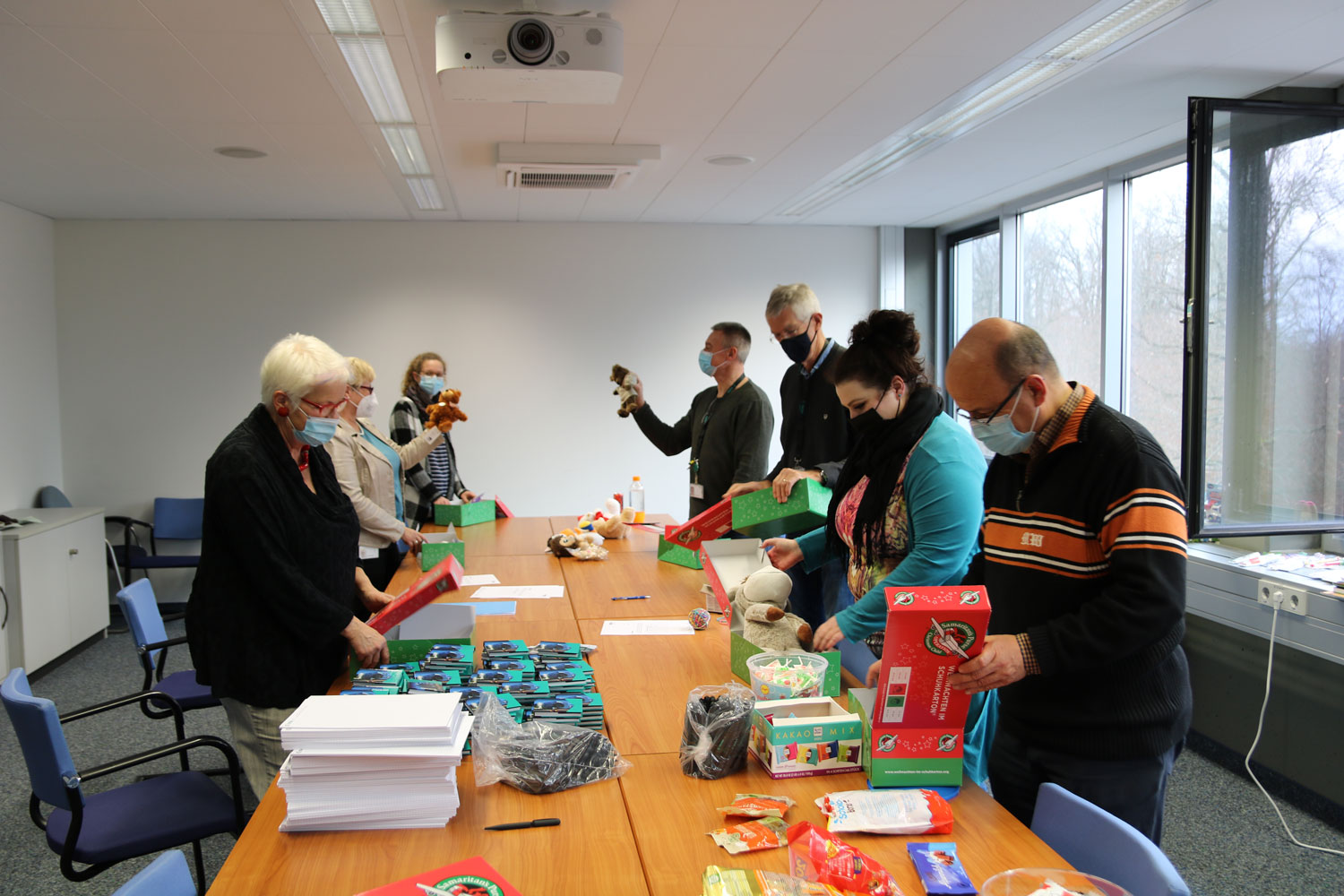 Aus der geplanten Packparty wurde zwar Pandemiebedingt nichts, aber ein kleines engagiertes Team schaffte es dennoch 100 Kartons zu bestücken.