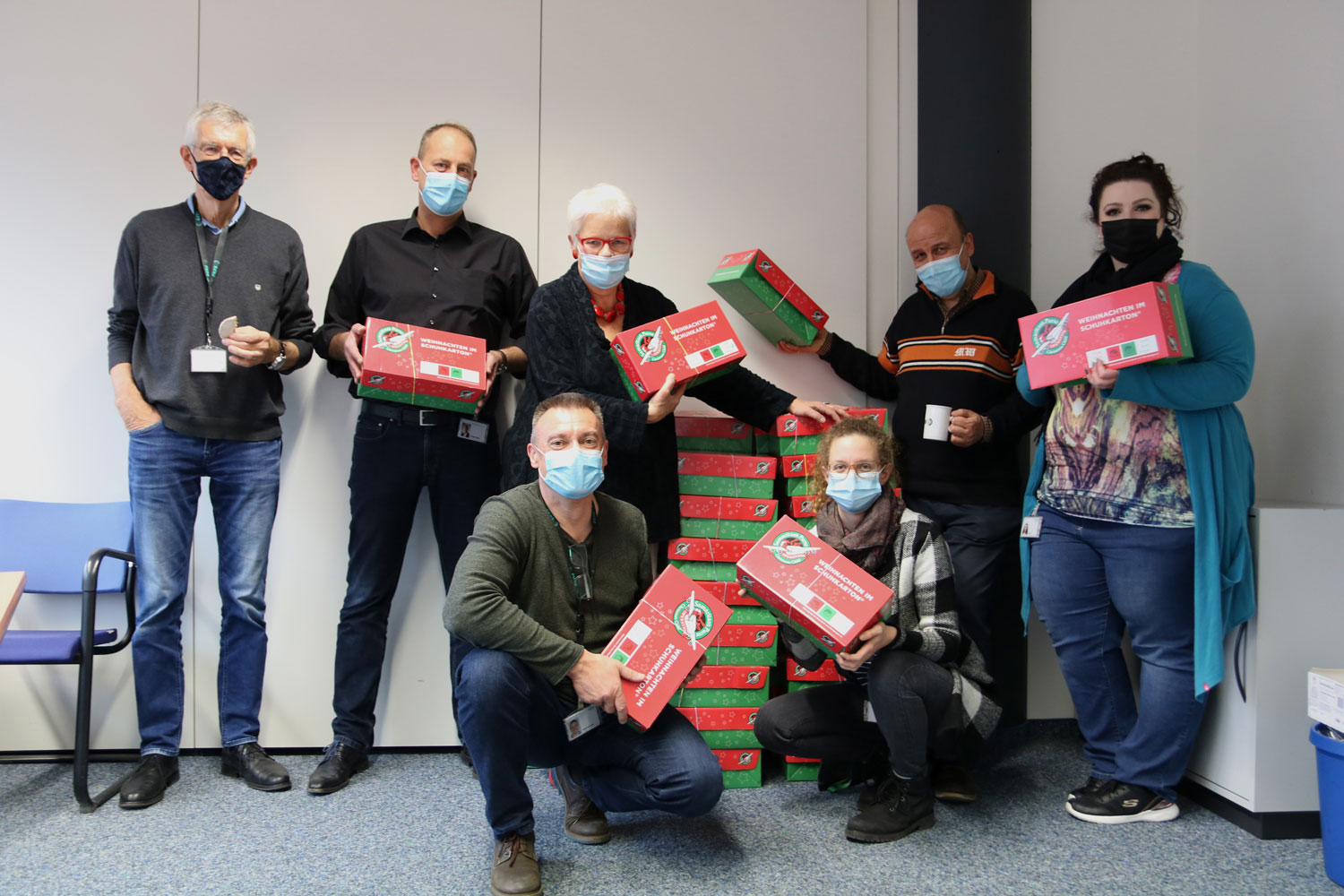 "Weihnachten im Schuhkarton" ist die weltweit größte Geschenkaktion für bedürftige Kinder. Mit dem Anliegen, in der Vorweihnachtszeit etwas Gutes zu tun und seine Mitarbeiter*innen zusammenzubringen, entschied sich das FKFS für eine Teilnahme an diesem Projekt. Dabei werden Päckchen mit Spielzeugen, Malsachen, Kleidung und Hygieneartikeln für Kinder in den Altersgruppen 2 bis 14 Jahren bestückt, an eine zentrale Stelle verschickt und von dort an bedürftige Kinder in verschiedenen Ländern verteilt.