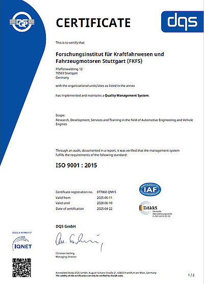 The FKFS is certified according to ISO 9001. The current certificate can be downloaded here as PDF.